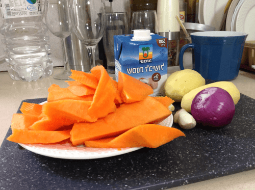 Тыкву и картофель очищаем, режем на кусочки и складываем в кастрюлю.