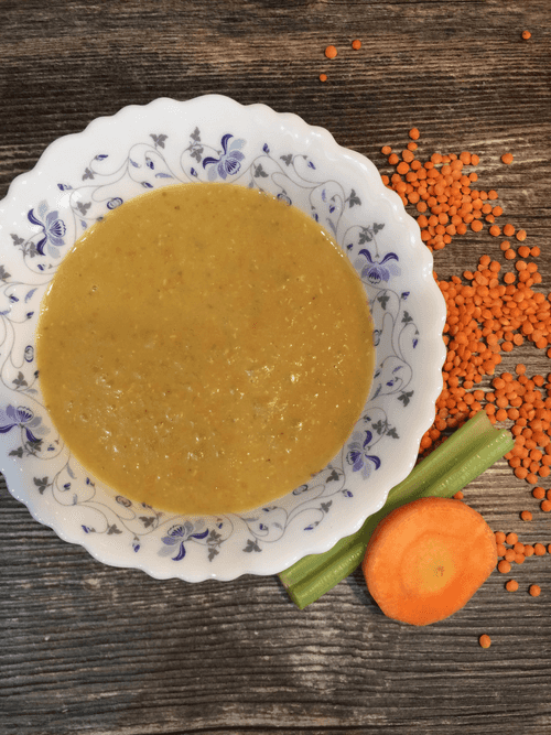Вегетарианский суп-пюре из чечевицы и сельдерея