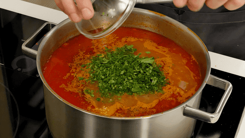 На следующий день разогреть щи, посолить и поперчить по вкусу, добавить измельченную зелень и чеснок.