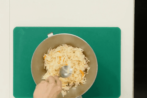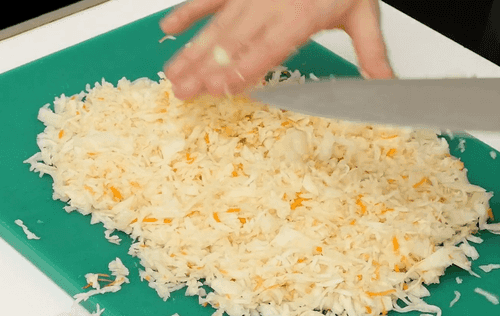 Квашеную капусту промыть холодной водой и снова отжать.