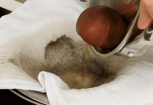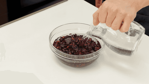 Сварить фасоль и свеклу целиком отдельно друг от друга до готовности. Свекольный отвар процедить через кухонное полотенце или марлю, сложенную в несколько слоев.