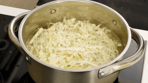 Вскипятить 2 литра воды, положить туда капусту и картофель, варить 25 минут.