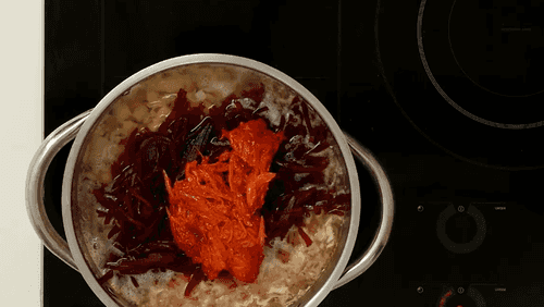 Затем добавить пассеровку и свеклу. Варить еще 15 минут.