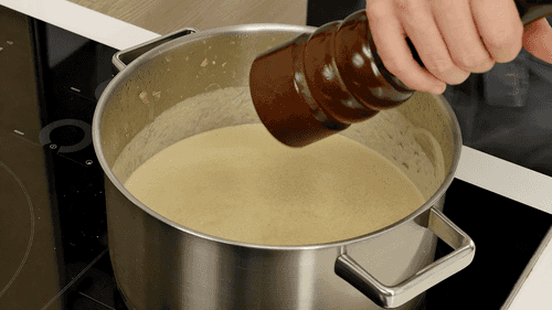 Добавить соль, перец и мускатный орех по вкусу.