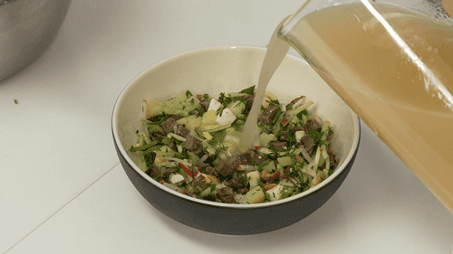 Вопрос о том, чем же лучше заправлять окрошку — кефиром или квасом — вызывает бурные дискуссии, так же как и споры о составе этого холодного супа. Тем не менее, в окрошке заключена суть русской кулинарной традиции, и ее рецепт варьируется от региона к региону, а также от одной семьи к другой. Мы предлагаем вам наш вариант, который украсит «Золотую тысячу» — окрошка на белом квасе с добавлением говядины.
