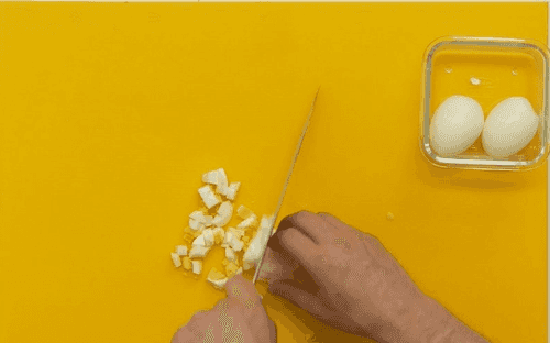 Картофель нарезать кубиком со стороной около сантиметра и сварить в подсоленной воде до готовности.