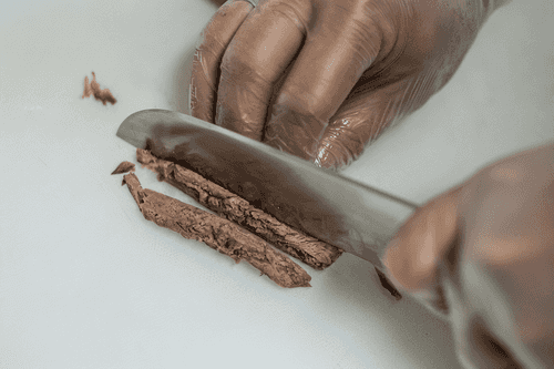 Выложить на соус по 20 грамм говядины и курицы, накрыть 30 граммами огурца. Все ингредиенты супа должны быть холодными.