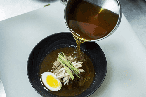 Суп нанмен, представляющий собой важный элемент пхеньянской кулинарии, пользуется большой популярностью в Северной Корее, несмотря на свою малую известность за её границами. Название этого блюда переводится как «холодная лапша» и подразумевает под собой освежающий суп на основе мясного бульона. Его вкус, который достигает своего максимума благодаря добавлению соевого соуса, рисового уксуса и горчицы, чем-то напоминает знакомую нам окрошку, но с лапшой вместо привычных ингредиентов. Как приготовить нанмен, демонстрирует шеф-повар московского корейского ресторана K-grill Дмитрий Сон.