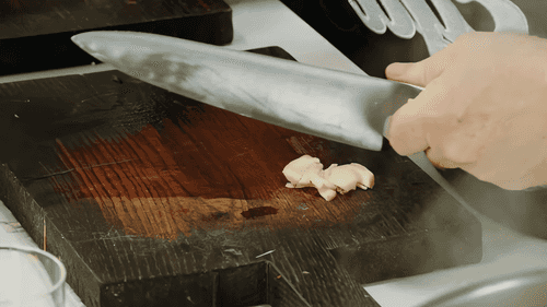 Измельчить 2–3 зубчика чеснока и листья петрушки.