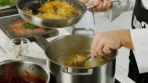 Существует множество разновидностей борща, и можно с уверенностью утверждать, что количество рецептов равно числу людей, которые его готовят. В рамках нашего мастер-класса шеф-повар ресторана «Волна», Александр Васильевич Попов, поделился основными правилами приготовления этих супов, используя московский борщ в качестве примера. Важно отметить, что в данном варианте он был приготовлен с небольшими изменениями по сравнению с традиционным рецептом: в московском борще картофель отсутствует.