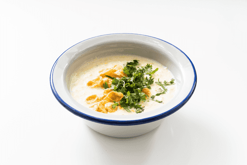 Разлить суп по тарелкам, посыпать хлопьями (сухим завтраком) и рубленой кинзой.