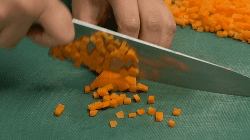 Лук и морковь нарезать мелким кубиком. На растительном масле обжарить сначала лук до мягкости, затем добавить морковь и жарить, помешивая, еще 3–4 минуты. Добавить зажарку к супу, туда же бросить нарезанное мясо и варить до готовности гречневой крупы и картофеля.