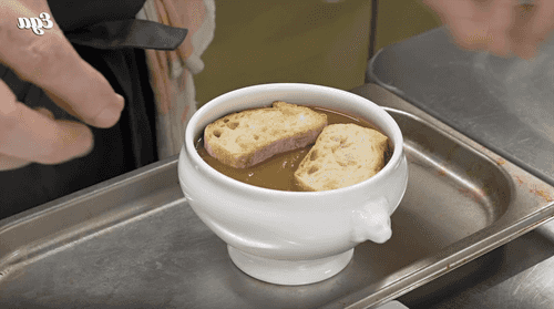 Луковый суп с крутонами – это изысканное блюдо, которое восхищает своим глубоким вкусом и ароматом. Приготовленный по рецепту шеф-повара Эрика Ле Прово из ресторана Le carré, этот суп сочетает в себе сладковатые ноты карамелизированного лука и насыщенный бульон, что делает его настоящим кулинарным искусством. Подается с хрустящими крутономи, которые добавляют текстурное разнообразие и усиливают общее впечатление от блюда. Этот суп идеально подходит для уютного ужина или как аппетитное начало любого торжественного обеда.