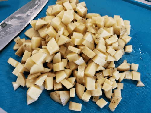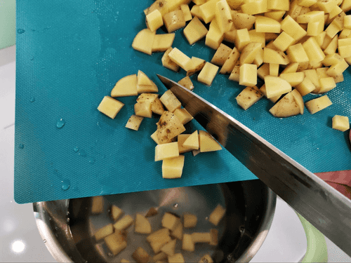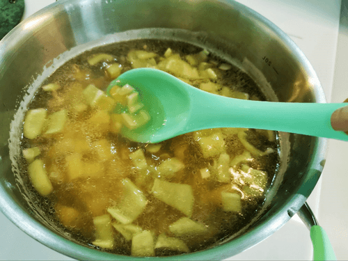 Поставить бульон на средний огонь и отправить в нем картофель.
