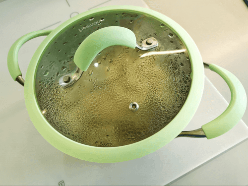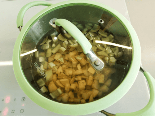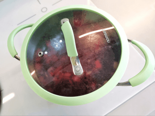 Закрыть кастрюлю крышкой и слегка убавить огонь.