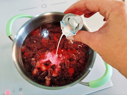 Перелить суп в тарелку, добавив сметану. Поперчить по вкусу.
