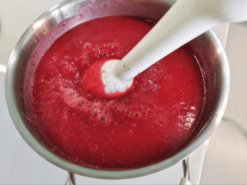 Взбить погружным блендером все ингредиенты до получения жидкого пюре.