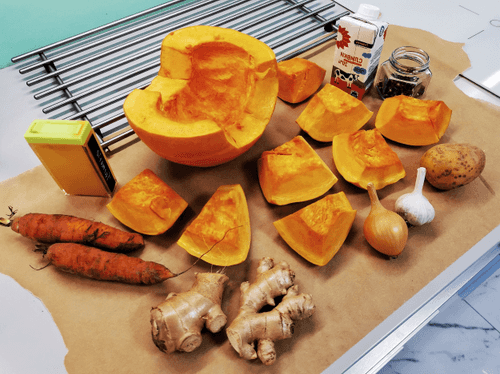 Подготовить ингредиенты, тыкву нарезать кубиками.
