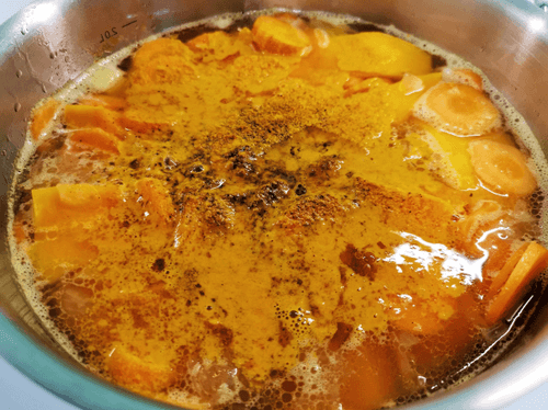 Уменьшить огонь и добавить карри.