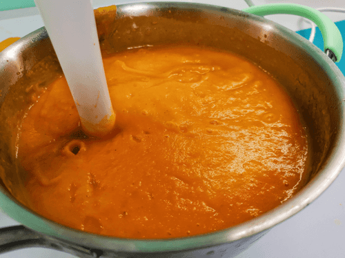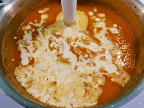 Снять с огня и взбить погружным блендером до однородного состояния.