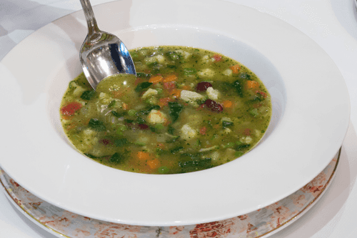 Минестроне – это традиционный итальянский овощной суп, который стал настоящей иконой местной кухни. Этот рецепт, разработанный шеф-поваром Джузеппе Дави из ресторана Butler, подчеркивает богатство вкусов и текстур, которые можно найти в каждом его ингредиенте. Суп наполнен свежими сезонными овощами, которые придают ему яркий цвет и насыщенный аромат, а также обеспечивает неповторимую гармонию вкусов. Минестроне идеально подходит для уютных семейных ужинов или как легкое угощение в любое время года, напоминая о теплоте и дружелюбии итальянского домашнего стола.