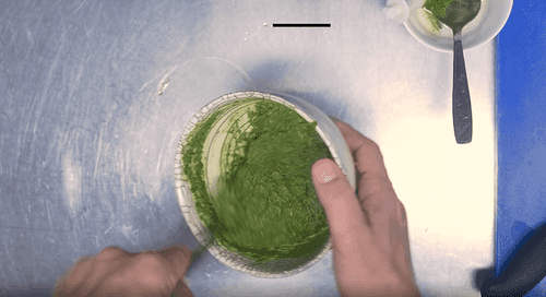 Пока суп варится, приготовить песто. Положить в чашу блендера 60 грамм базилика, чеснок, соль, перец и 100 мл оливкового масла. Чуть измельчить содержимое чаши и добавить немного льда — это поможет сохранить цвет зелени. Добавить кедровые орехи, еще 25 мл оливкового масла и тщательно измельчить содержимое чаши. Переложить песто в миску, насыпать тертый пармезан и добавить совсем чуть-чуть оливкового масла. У песто должна быть консистенция густой сметаны, соус не должен быть жидким.