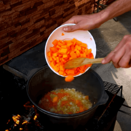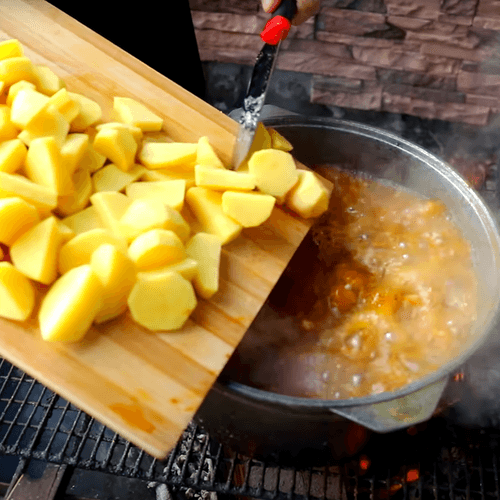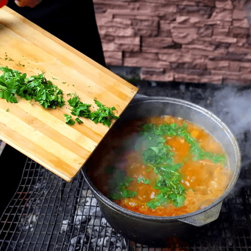 Мясной суп с тыквой на костре — это настоящее русское блюдо, наполненное ароматами природы и уюта походной кухни. Его корни уходят в традиции приготовления пищи на открытом огне, когда горячий и насыщенный суп согревал путников и охотников. Бархатистая сладость тыквы сочетается с насыщенным вкусом говядины, нежностью картофеля и легкой грибной ноткой шампиньонов. Чеснок и зелень придают блюду дополнительную пряность, делая его не только питательным, но и по-настоящему ароматным. Этот суп идеален для приготовления на костре во время выездов на природу или уютных семейных вечеров. Он не только утоляет голод, но и дарит особенную атмосферу единения с традициями русской кухни.