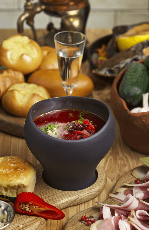 В этом рецепте собраны разнообразные ингредиенты, среди которых присутствуют куриные части, свиные ребра, ветчинная кость и сосиски. Это творение принадлежит Владиславу Пискунову, бренд-шефу заведения «Матрешка».