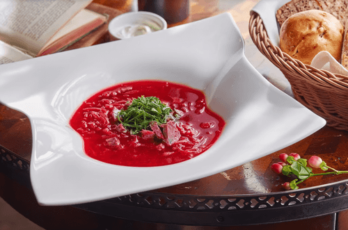 Классический борщ с томатами является настоящей находкой для любителей насыщенных вкусов. В этом блюде свекла и свекольный сок выступают в двойном объеме, придавая ему яркий цвет и сладковатый вкус, в то время как томатная паста и сливовидные помидоры добавляют необходимую кислинку и глубину аромата. Этот рецепт был разработан Сергеем Волконенковым, шеф-поваром ресторана «Воронеж», который сумел интерпретировать традиционное украинское блюдо, привнеся в него уникальные ноты и современный подход. Борщ отлично подходит как для семейного ужина, так и для более торжественных случаев, радуя гостей своим богатым вкусом и ароматом.
