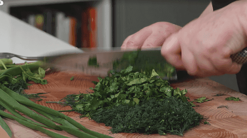 Щавель перебрать, помыть, срезать стебли и нарезать его соломкой.