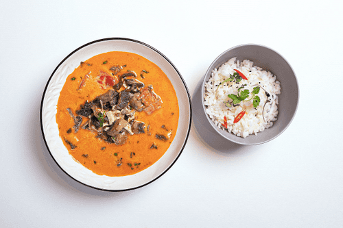 Подавать с отварным рисом.