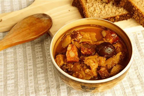 Солянка мясная с квашеной капустой — это блюдо, олицетворяющее русскую кухню, сочетающее кисло-соленые нотки капусты и огурцов с насыщенным мясным вкусом. Истоки рецепта уходят в далёкое прошлое, когда крестьяне и купцы готовили солянку из того, что было под рукой — мясных продуктов, капусты, специй. Сегодня это ароматное блюдо славится своей сытностью и глубиной вкуса. Тушеная капуста, насыщенная пряностями, сочетается с мясными продуктами, поджаренными с луком, создавая богатый вкусовой профиль. Запеченная с сухарями и маслом, она приобретает аппетитную корочку, а украшение петрушкой, маслинами и брусникой добавляет свежести. Солянка — это гармония контрастов, которая согревает в холодные дни и радует гостей за праздничным столом.