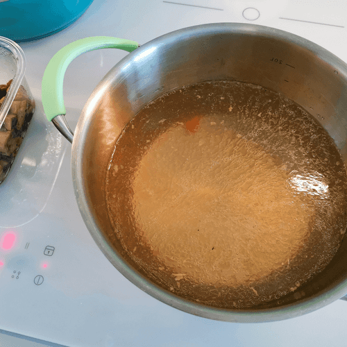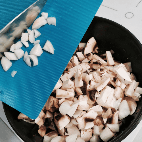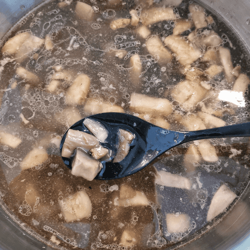 Как только бульон хорошо прогреется, добавить грибы и снять с огня.