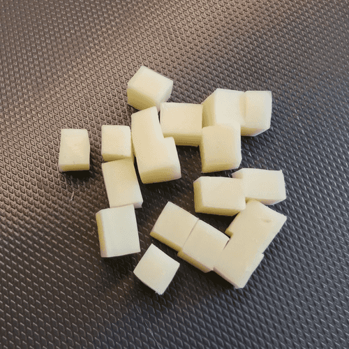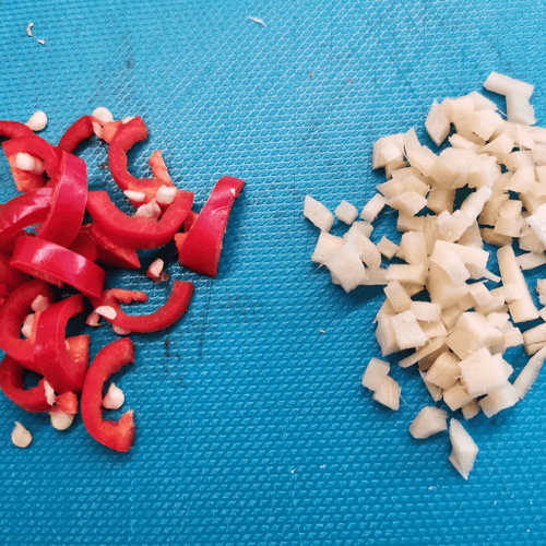 Моцареллу нарезать небольшими кубиками.