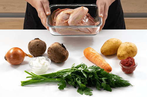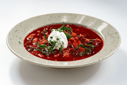 Свекольник горячий — это ароматный и насыщенный суп, который является классическим блюдом русской кухни. Его история уходит корнями в традиции славянского кулинарного искусства, где свекла играет важную роль. Густой и согревающий, он прекрасно подходит для холодного времени года. Свекольник обладает приятной сладостью свеклы, дополненной легкой кислинкой томатной пасты, а насыщенный куриный бульон придает ему глубокий, мясной вкус. Обжаренные овощи добавляют нотку карамелизации, делая вкус более сложным. Подается с щедрой ложкой сметаны и свежей зеленью, что придает ему нежность и свежесть. Этот суп идеально сочетается с черным хлебом или пампушками. Он не только согревает тело, но и пробуждает ностальгические чувства, возвращая к уюту семейных трапез.