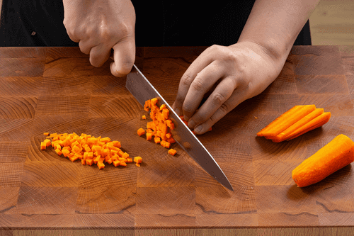 Мелко нашинковать морковь.