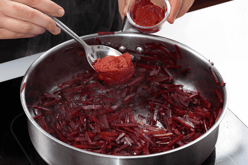 Добавить к свекле томатную пасту.