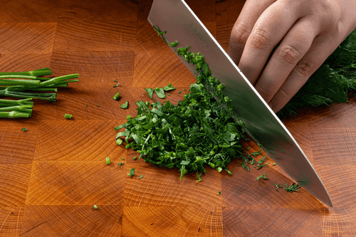 Мелко нарубить зелень.