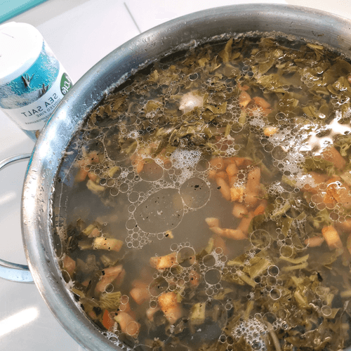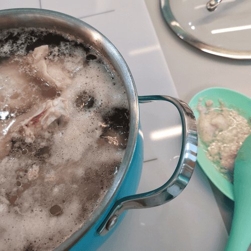 Как только бульон закипит, убавить огонь и накрыть крышкой.
