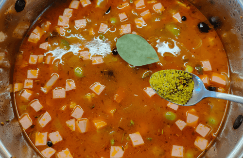 Добавить бульон, лавровый лист и лимонный перец.