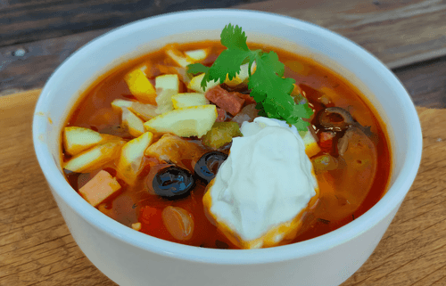 Мясная солянка с картофелем — это яркий представитель русской кухни, сочетающий в себе насыщенный мясной вкус с кисло-соленой пикантностью. Ее корни уходят в старинные трактиры, где хозяйки готовили сытные и ароматные блюда из имеющихся в доме продуктов. В этом рецепте объединяются разнообразные виды мяса — говядина, курица, копчености — что придает блюду многогранность вкуса. Соленые огурцы, маслины и каперсы добавляют свежую кислинку, а томатная паста делает вкус глубже. Картофель придает солянке густоту и питательность. Традиционно подается с ломтиком лимона и сметаной, создавая баланс между кисло-соленым и нежным сливочным вкусом. Это идеальное блюдо для холодных дней, которое согревает и насыщает, оставляя приятное послевкусие домашнего уюта.