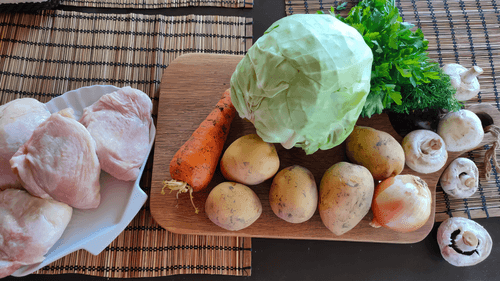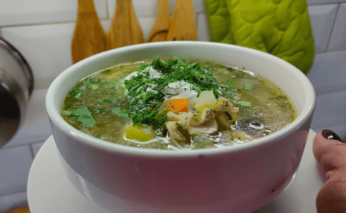Щи куриные с грибами — это душевное блюдо русской кухни, уходящее корнями в традиции деревенской трапезы. Сытный бульон из куриных бедер придаёт глубину вкусу, а ароматные шампиньоны добавляют нежности и лесного оттенка. Капуста, основа классических щей, дарит лёгкую кислинку, уравновешенную сладостью моркови и насыщенностью картофеля. Лавровый лист и свежая зелень придают блюду пряные нотки, делая его идеальным для согрева в холодное время года. Готовые щи подаются с ложкой сметаны, которая смягчает вкус и добавляет кремовой текстуры. Их едят горячими, наслаждаясь каждым глотком, ведь это не просто суп — это уют, традиции и настоящая гастрономическая классика России.
