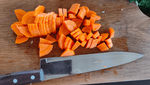 Пока варится курица, в бульон добавить нарезанную морковь.