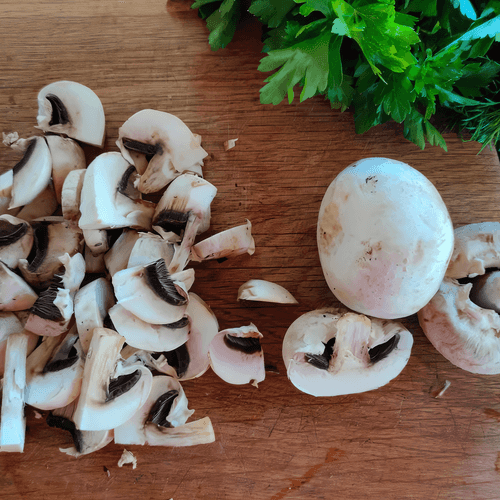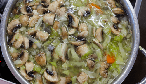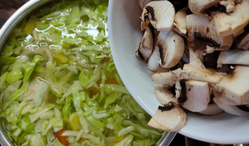 Через 5–10 минут, после того как картофель будет почти готов, добавить нарезанные грибы.