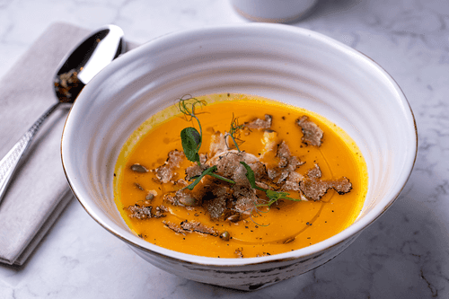 Тыквенный крем-суп с лангустинами и черным трюфелем