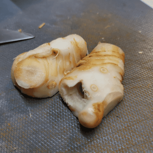 Галангал разрезать пополам.