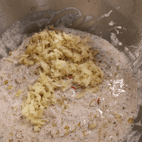 Имбирь натереть на крупной терке.