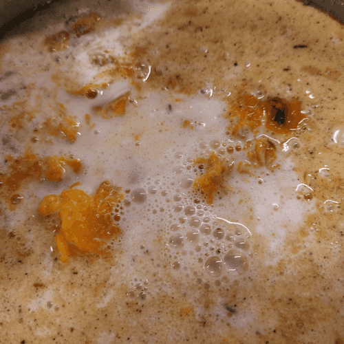 Через минуту влить кокосовое молоко.