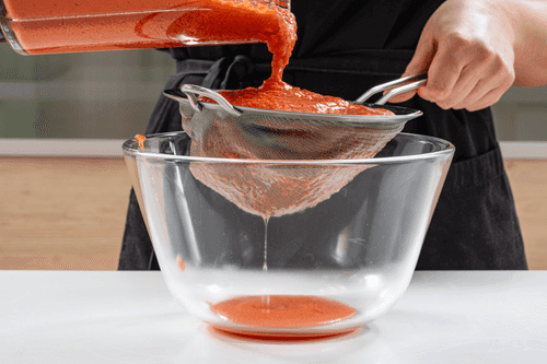 Процедить пюре, чтобы избавиться от семян и кожицы.