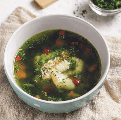 Легкий суп с филе минтая, сельдереем и шпинатом